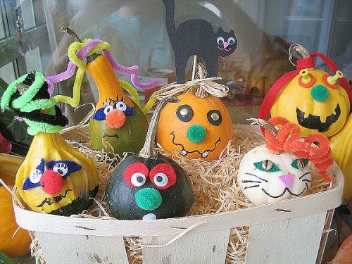 The pumpkin decoration above is very simple and easy to create. Take three pumpkins of different proportions and cut the tops off and clean them out as you normally would. Cut a decoration of your liking out (the holes in the pumpkin above are made with a drill). Cut the bottoms off of the two that are going to be stacked and make sure that they will fit securely. Cut a hole in the back of the large pumpkin large enough to pull the string of lights through. Pull the lights through and stack the pumpkins on top of each other distributing the lights evenly throughout each pumpkin. LED battery powered lights are the easiest lights to use due to they don't have any power cords hanging out of the back and you don't have to use a power outlet. You can use florist tape to make them stay in place. After you have finished the pumpkins add some twigs and leaves to give it the finishing touches. The idea is from Southern Living which has a lot of great Halloween decorating ideas.